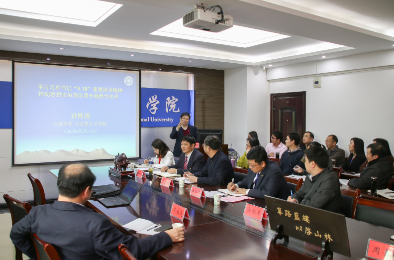 3月30日下午,北京大学海角首页社网页版院长孙熙国教授受邀来校,作题为《学习总书记“3.18”重要讲话精神 推动思想政治理论课专题教学改革》的专题报告,北京大学战略研究所副所长吴永先教授、校党委书记王立兵出席报告。
