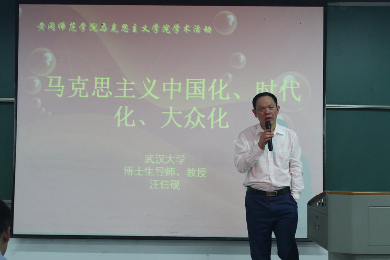 516日下午2:30,武汉大学哲学学院教授、博士生导师汪信砚教授莅临我校,在逸夫楼c01 为我院师生作了一场题为“马克思主义中国化、时代化、大众化”的报告。