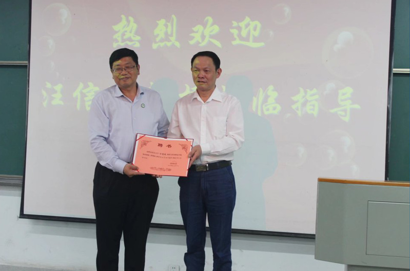 在学术报告前,我校党委书记王立兵为汪信砚教授颁发客座教授聘书。汪信砚教授长期从事马克思主义哲学教学与研究工作,是教育社会科学委员会哲学学部副秘书长、中国价值哲学研究会副长、全国应用哲学研究会副会长、国务院学位委员会哲学学科评议组成员、国家社会科学基金学科规划评审组专家、教育部长江学者特聘教授。