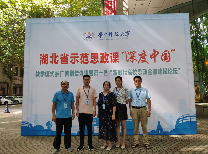 2019年7月16日至17日,海角首页社网页版教师蔡潇、程之胜、董夏兰、黄杰、缪小勇参加了由华中科技大学海角首页社网页版主办、湖北经济学院海角首页社网页版和长江大学海角首页社网页版共同协办的湖北省示范思政课“深度中国”教学模式推广首期培训班暨第一届“新时代高校思政金课建设论坛”。