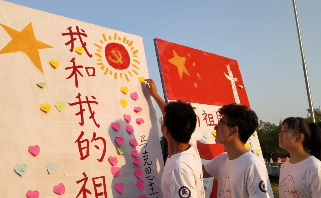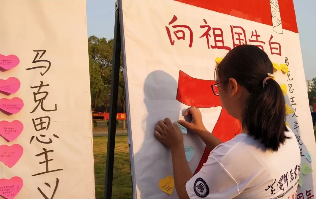 告白祖国——告白墙前列队粘贴祝福便签
