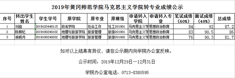 2019年海角首页社网页版转专业成绩公示