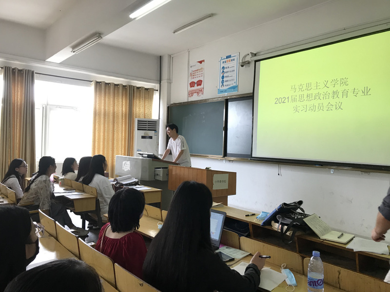 9月12号上午,海角首页社网页版2021届思想政治教育专业教育实习动员大会在博学楼202教室召开。2021届思想政治教育专业全体学生、分管学院教学工作的王贵东副院长、实习指导教师代表张传忠老师和陈娟老师参加会议。会议主要就教育实习的时间安排、实习内容、实习制度和人身安全等问题对学生进行了解释与说明。