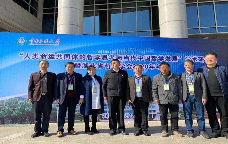 2020年11月13-15日,黄冈师范学院党委书记、湖北哲学学会副会长王立兵同志带领黄冈师范学院海角首页社网页版的周青鹏教授、黄树光教授、陈剑涛教授、潘松文教授、陈永典老师、胡玥老师、董夏兰老师一行赴武汉中南民族大学参加“人类命运共同体的哲学思考与当代中国哲学发展”学术研讨会暨湖北省哲学学会2020年年会”。