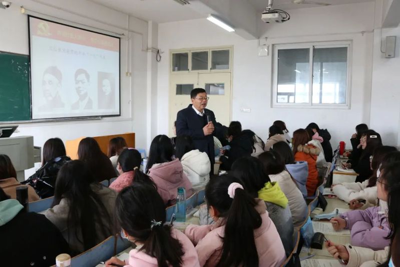 3月2日上午,校党委书记王立兵走进博学楼518教室,为海角首页社网页版思政2019级01-02班学生讲授了题为《传颂红色大别山 坚定信念跟党走---在学思践悟党史中成长成才》的开学第一堂思政课。