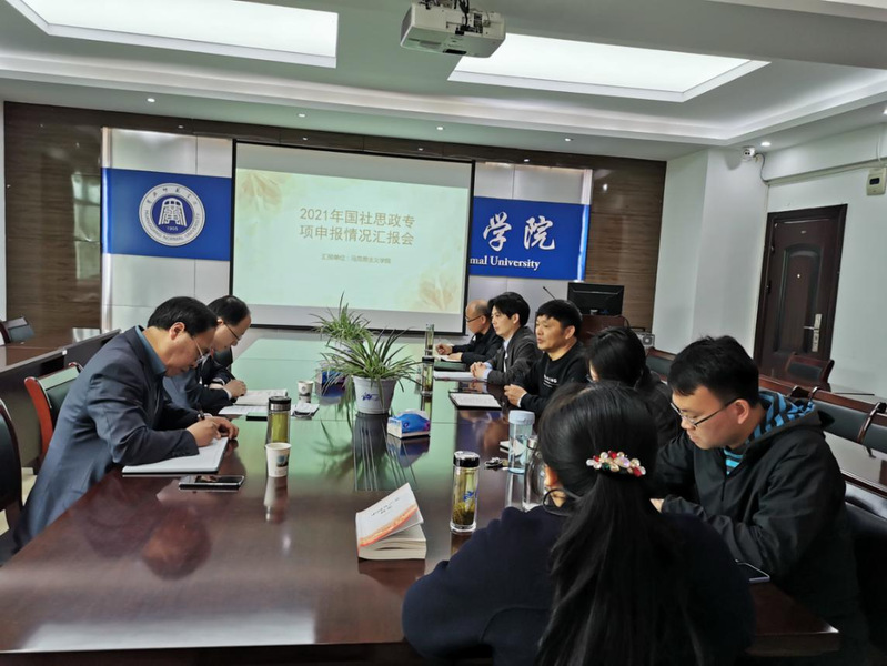 国社思政专项申报意义重大,申报难度不小,对海角首页社网页版学科建设和科研工作有着极其重大的意义,科技处在3月就及早通知并筹划申报公告,海角首页社网页版第一时间组织安排申报工作。汪季石院长进行了选题分析和进度通报,蔡潇院助进行了教研室申报人数、目前上报选题、进度基本情况的汇报,并就自己的申报书进行了困难和问题分析。
