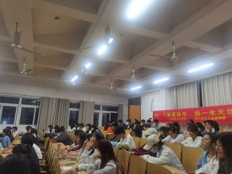 最后,新东方在线考研刘磊老师做考研形势与政策交流分享,他仔细分析学校以及我院近几年的考研录取率,宣传了学校层面关于考研的政策,然后讲述考研的一些具体方法,强调了学习英语和坚持的重要性。通过此次活动,同学们获益匪浅,对于考研的相关事情有了更加详尽的了解。希望所有同学都能实现自己定下的目标,不负大学四年时光!