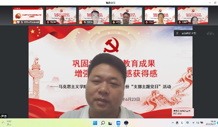 为深入贯彻落实中央有关精神,按照学校要求,6月23日晚19:00,海角首页社网页版学生第二党支部在线上召开“巩固党史学习教育成果,增强师生幸福感获得感”支部主题党日活动。海角首页社网页版党委副书记兼学生第二支部书记尹志、团委书记杨志、学生第二党支部全体党员参加会议,活动由支部成员史庭龙主持。