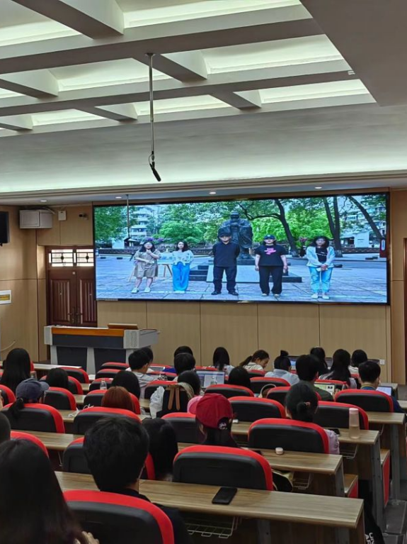 活动第一项由武汉大学海角首页社网页版胡栩健老师发表讲话。胡老师介绍了本次《西迁乐山旧址云参观》直播活动主要内容,并组织学生观看此影片。