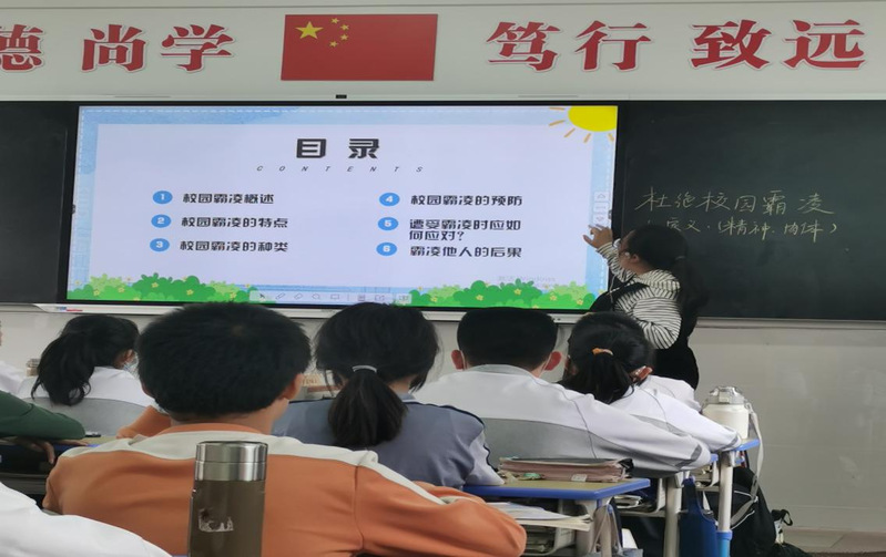 (一)师德体验。作为师德体验的一部分,我们参与了该校马忆贤老师为初一学生作的“如何预防校园欺凌”的讲座。在讲座中马老师通过生动且真实的案例,讲述了校园欺凌的危害性,并将预防校园欺凌的方式方法介绍给学生,做到防患于未然,让学生能在校园中快乐、健康的成长!通过参与该活动,让我们真切体会到作为一名教师应有的责任感。