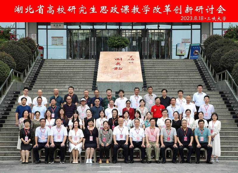2023年8月18日湖北省高等学校研究生思政课教学改革创新研讨会在三峡大学举办。来自湖北省二十余所高校的五十多位专家学者共聚一堂,共同探讨中国式现代化融入研究生思政课教学改革研究。我院王贵东副院长、陈永典老师受邀莅会。