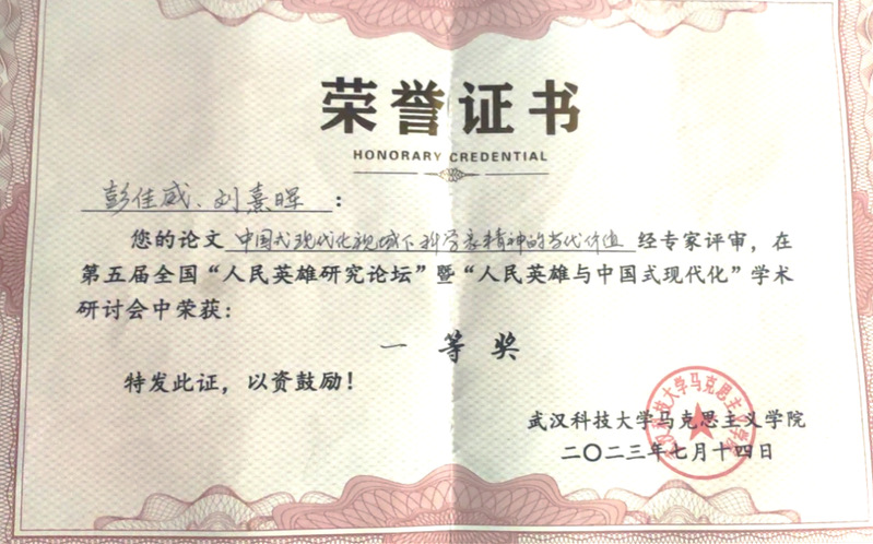此次论坛汇聚了来自国防科技大学、北京化工大学、武汉理工大学、中南民族大学等全国多所高校的师生。石国进教授指导彭佳威刘熹晖撰写的参会论文《中国式现代化视域下科学家精神的当代价值》荣获论坛征文一等奖。通过参加本次研讨会,彭佳威刘熹晖均表示获益匪浅,不仅开阔了学术眼界,而且丰富了专业知识,有益于在未来学术探索的道路上取得更多进步。