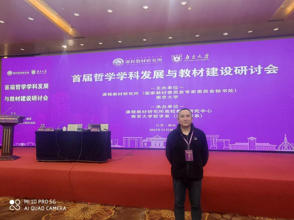 11月25-26日,由教育部课程教材研究所(国家教材委员会专家委员会秘书处)、南京大学主办,课程教材研究所高校教材研究中心和南京大学哲学系承办的“首届哲学学科发展与教材建设研讨会”在南京召开。来自北京大学、清华大学、复旦大学、中国人民大学、武汉大学、中山大学、南开大学、吉林大学、山东大学、北京师范大学等40余所高校的80多名专家以及9家媒体、期刊、出版社的代表齐聚金陵,共襄盛会。大家围绕哲学教材的历史与现状、哲学教材的成就与经验、哲学教材的个案研究、哲学教材的国际比较、哲学教材与人才培养的关系等议题展开了深入讨论。我院陈松老师应邀参会,并在分论坛中做了题为“哲学课程的双重维度及其可能的统一之道”的发言。通过一天半的交流,与会者一致认为,哲学教材建设在哲学学科发展和哲学人才培养过程中占据着重要地位,应在学科评估和职称评审中进一步重视教材建设成果,哲学工作者要争取在关键学科、关键领域编写出高水平教材,为新时代自主知识体系的建构贡献出自己的力量。