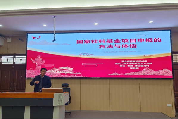 2023年12月14日下午,我院邀请武汉工程大学海角首页社网页版院长、博士生导师曹胜亮教授作学术报告,报告的主题是:国家社科基金项目申报的方法与体悟。活动由我院副院长夏慧教授主持,海角首页社网页版和政法学院全体教师参加。
