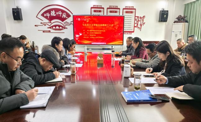 院党委书记余晚霞在总结发言中传达了学校2025年春季学期教职工大会精神,并通报了学院2024年终考核结果,既充分肯定了全体教职工为学院发展作出的贡献和取得的成绩,也指出了学院在发展中存在的短板与不足。同时也提出了四点希望,一是在总结中汲取奋斗力量。她希望大家以高度的责任感和使命感,认真总结,在各个方面汲取奋斗力量,实现新的突破。二是在挑战中明确发展方向。她希望要以2025年年终目标考核各项分指标为指挥棒,以高质量党建引领学院高质量发展为目标。紧扣立德树人根本任务,围绕学院发展特色,明确发展方向,提升工作成效。三是在担当中共绘马院蓝图。通过坚守教育初心、永葆进取之心、凝聚协作同心,点亮学生成长之路。四是在细节中守护学院平安。她希望全院教职工严格落实学校要求,做到遵规守纪,强化师德师风,守牢安全底线。