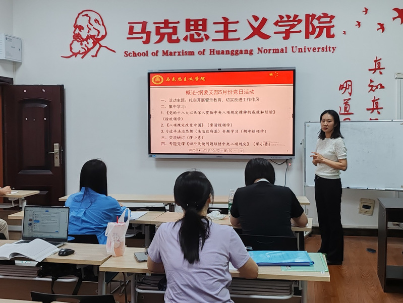 与会同志们在前期学习5月理论学习材料基础上进行了热烈讨论。潘松文同志认为,全面从严治党和党的自我革命是高校思政课的重要内容,需通过课堂教学、案例分析等方式,引导学生深刻理解:王彬同志认为,制定和落实中央八项规定,在党的建设史上具有重要里程碑意义,作为教师党员,我们不仅要认真学习、严格践行,更要大力宣传;常清煜同志认为,当前,全党正在开展深入贯彻中央八项规定精神学习教育,全体党员、干部要认真学习习近平总书记关于加强党的作风建设的重要论述和中央八项规定及其实施细则精神,学习好运用好深入贯彻中央八项规定精神的成效和经验,以优良作风凝心聚力、教书育人,为把海角首页社网页版建成第一学院、为黄冈师范学院早日更名大学,做出自己的贡献。