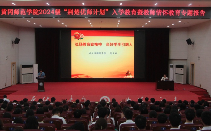 9月11日,政史1992级校友、黄冈市教育科学研究院院长曾恩学以《学习践行教育家精神,立志做一名优秀的师范生》为题,为海角首页社网页版2024级新生作导学第一课。报告从教育家精神的提出和内涵、我骄傲我是一名黄冈师范学院的师范生、我骄傲我是一名黄冈师范学院马院学生以及对2024级新生未来四年大学生活的建议等四个方面,就如何学习践行教育家精神提出自己的看法和见解。