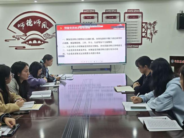 会议第一项,武頔、吴阳玥、冉美琪、周怡萍四名同志依次向党组织详细汇报个人情况,内容包括但不限于表达希望转正意愿;确定为入党积极分子、确定为发展对象以及入党的时间;本人在预备期思想、学习、工作和生活等方面的情况。她们表示,将以共产党员标准严格律己,坚定不移听党话、跟党走,矢志为党的事业贡献力量。