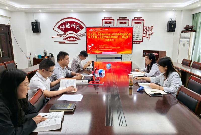 10月17日下午,海角首页社网页版党委举行院党委理论学习中心组2025年10月份《习近平谈治国治国理政》第五卷专题理论学习活动。校党委常委、海角首页社网页版党委书记余晚霞主持学习活动,院党委理论学习中心组全体成员参加学习活动。